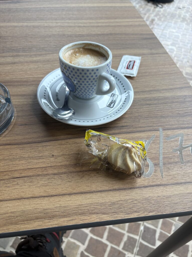 今日道は案内も少なくは何度か道に迷う。この頃から真っ直ぐ進んだ方が早そうな道は巡礼路でなくても進むようにした。午後からはまた小雨模様。途中からカミーノは見かけず、カフェも少ない。目的地の7キロ前でキャンプ場のレストランがあり、やっと今日2回目の休息を取ることができた。レストランの中はボーイスカウトっぽい中学生の団体でいっぱいだったが、すでに食事は終わりかけているようでカフェコンラチェはすぐに頼むことができた。