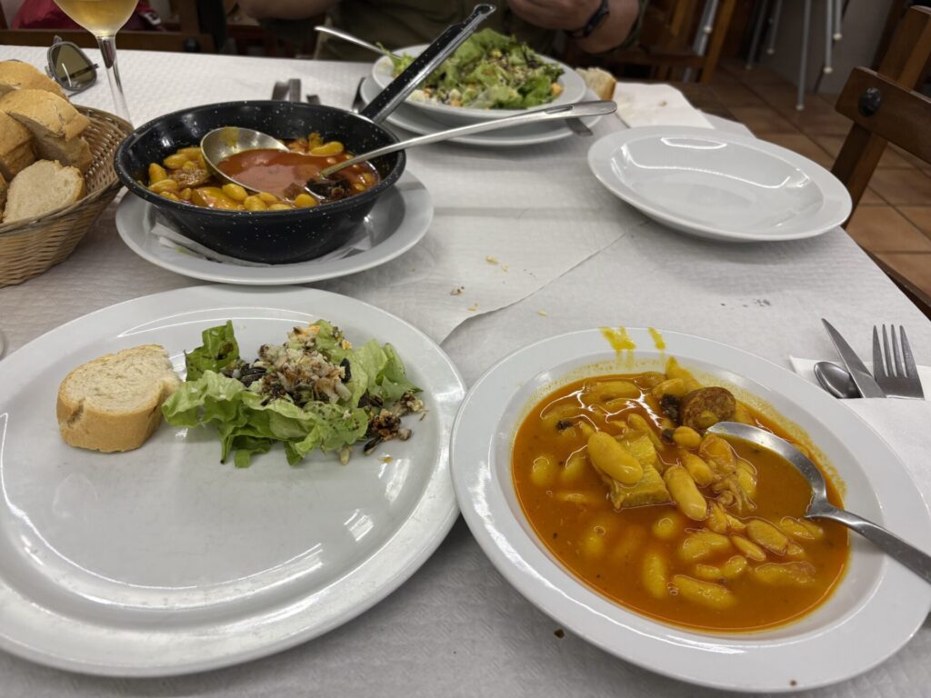 テキサス人は私に比べると歩く速度が遅いので、しばらくしてから先に行くことにする。14時半頃に今日の目的地のリバデセリャの宿に着くが、管理人部屋は閉まっており外出中と書かれている。Bookibg.com経由でメールしてしばらく待っていたが返事が無いので先に昼食に行くことにすると、店の前でテキサス人に再会。一緒にレストランに入るとテキサス人の知り合い二人が隣のテーブルで食事中だったので一緒に歓談する。その一人のカリフォルニア人は四国のお遍路や熊野古道に興味あるとのことなので、私の熊野古道とサンチャゴ巡礼共通のクレデンシャル見せると、漢字のスタンプにいたく興味があるようだった。彼らは明日は20キロ先までだが私は40キロ先まで歩くのでもう会えないかな。